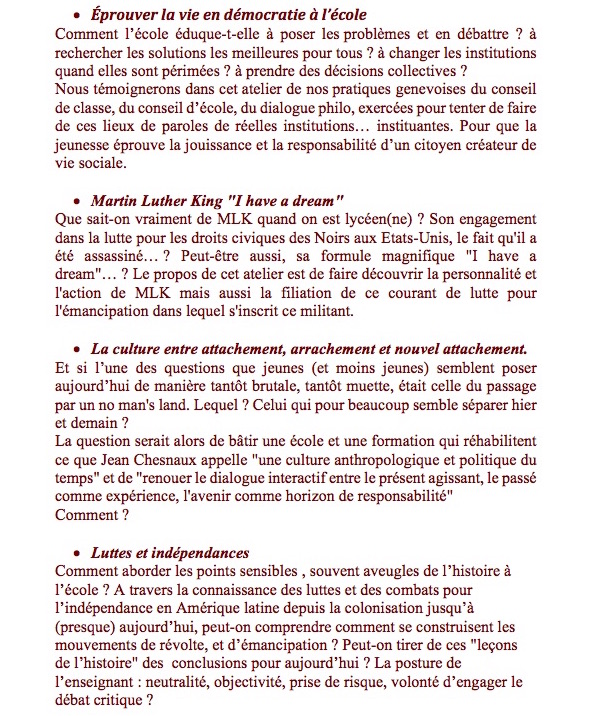 Pour tous les enseignants et les éducateurs. Pour tous ceux et toutes celles qui veulent une démocratie où chacun et chacune ait sa place… et où nul ne soit plus jamais tenté par la violence barbare.